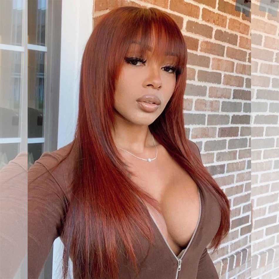 Reddish Brown Colored Layered Cut 5x5 Glueless Wigs
